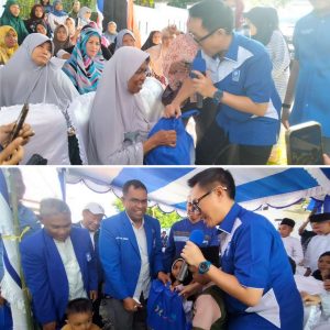 Selain giat silaturahmi dan konsolidasi partai, Eko Patrio, juga menyempatkan diri untuk menyapa serta bercanda gurau dengan ratusan warga penerima bantuan berupa Sembako, yang disediakan oleh pihak Partai Amanat Nasional.